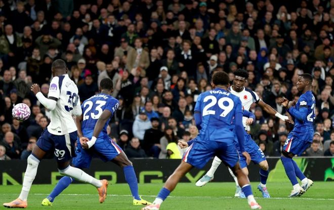 比赛开始不久热刺就遭受打击,贝里瓦尔因伤被换下场。加纳乔的射门被门将化解。切尔西在第34分钟收获进球。凯塞多送出助攻,若昂-佩德罗近距离抽射破门。落后的热刺随后的时间依然没能踢出像样的进攻。恩佐的头球攻门顶高了,内托的射门被扑出,吉腾斯浪费大好机会,佩德罗单刀不进。最终的比分定格为1-0,切尔西击败热刺。